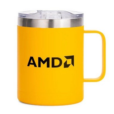 Crafted from premium double-wall vacuum insulated 18/8 stainless steel, this tumbler showcases a sleek powder-coated finish and a luxurious copper interior. Boasting a spacious 14 Oz. capacity, it enables you to enjoy your beverages at the perfect temperature – staying cold for 24 hours and hot for 12 hours. The thoughtful design incorporates a user-friendly handle for easy gripping and a leak-proof press-on lid for mess-free drinking. Complies with CCPSA, CPSIA, Prop 65. 4 1/2″ H