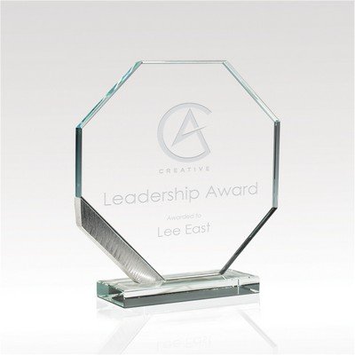 Cherished Starphire glass sculpted into an octagon forms the ever-popular Octennial award. A touch of random sanded silver metal heightens the radiance and appeal. Complies with Prop 65. 6.00″ W x 6.50″ H x 2.00″ D