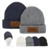 We’ve got you covered with this 100% acrylic knit beanie with a double layer design and front cuff that provides extra warmth and comfort. This classic style beanie stands out with a PU faux leather patch that can be customized with your logo. Available in a variety of colors, these comfy beanies are attractive and make a great promotional item or gift. One size fits most. 8.5″ W x 8.5″ D