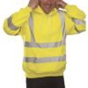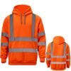 This is a safety hoodie pullover made of 280 GSM Inner Brushed Fleece material. The hoodie is designed to complye with ANSI/ISEA 107-2020 Type R Class 3 standards, which means it provides high visibility and is suitable for use in low-light conditions. The pullover also features 100% polyester reflective stripes, which add an extra level of visibility to help keep the wearer safe. The polyester material is soft, comfortable, and durable, making this hoodie is ideal for outdoor work environments